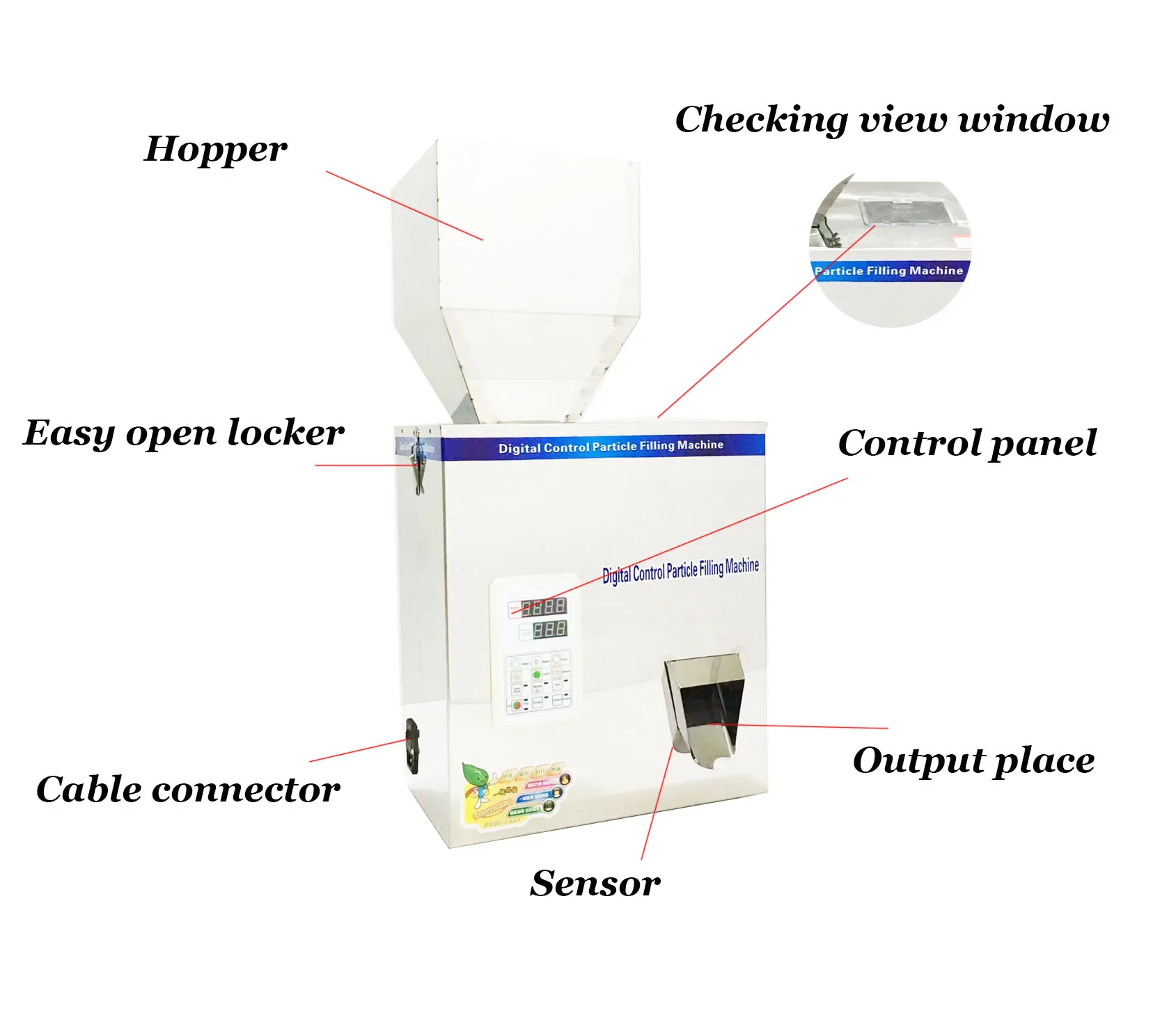 Product Name: Granular Filling Machine Tea Leaf Packing Particle Powder Filler Racking Machine Rice Nut Sesame Scale Herb Weighing And Filling